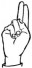 На ћирилици написано ВУКОСЛАВ ШЕПЕРКОВИЋ састоји се из 18 слова [?]. Исписано ћириличном једноручном азбуком за глувонеме: